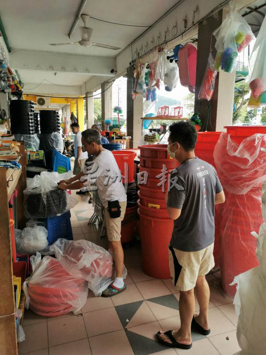当中,不乏民众抢购水桶作储水用途,当下想着的是要为家人和生活储存足够的用水,至于事后如何安置这些储水用具,才来打算。
