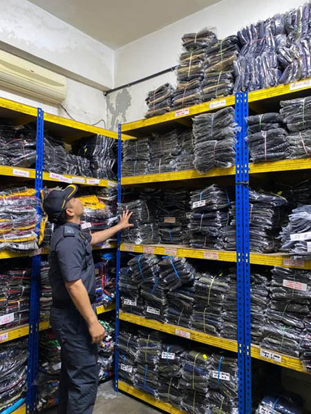 (槟城28日讯)槟州内贸局展开取缔行动,在北赖一家服装批发商店内,发现120条涉嫌仿冒优衣库(UNIQLO)商标的男性长裤。