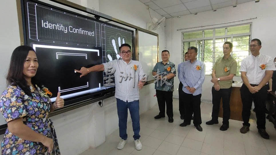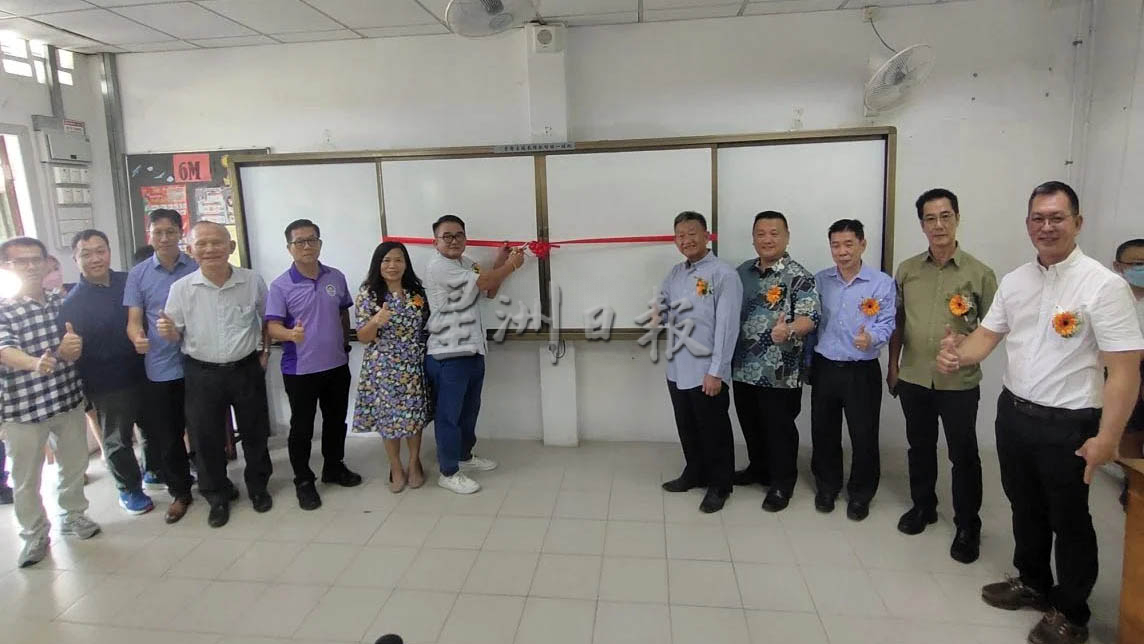 (大山脚19日讯)日新B校透过爱华教义演成功筹获逾107万令吉添置智能一体机,该校今早为完成装置智能一体机的16间课室及5间特别课室进行启用礼。