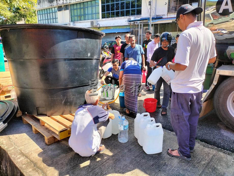 (槟城26日讯)北赖河底水管于本周二第4次破裂事件发生至今,位于输水管末端的公巴地区已是第4天断水,当地居民的储水耗尽,只能想尽办法取水,包括找山水、收集雨水和等待水槽车到来。