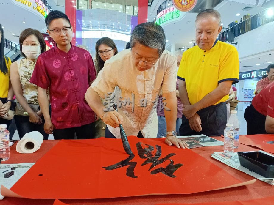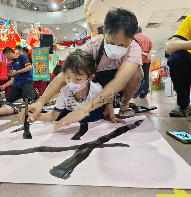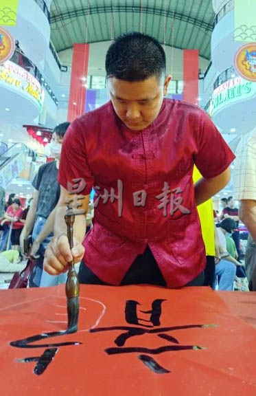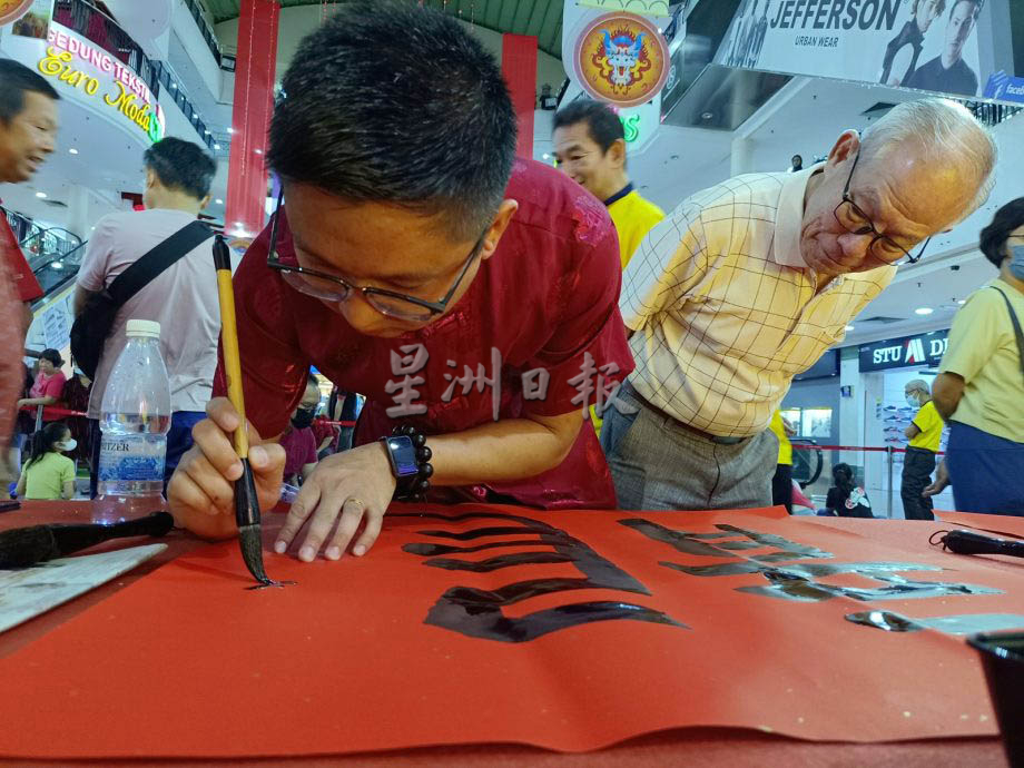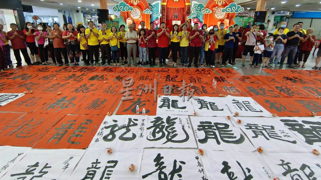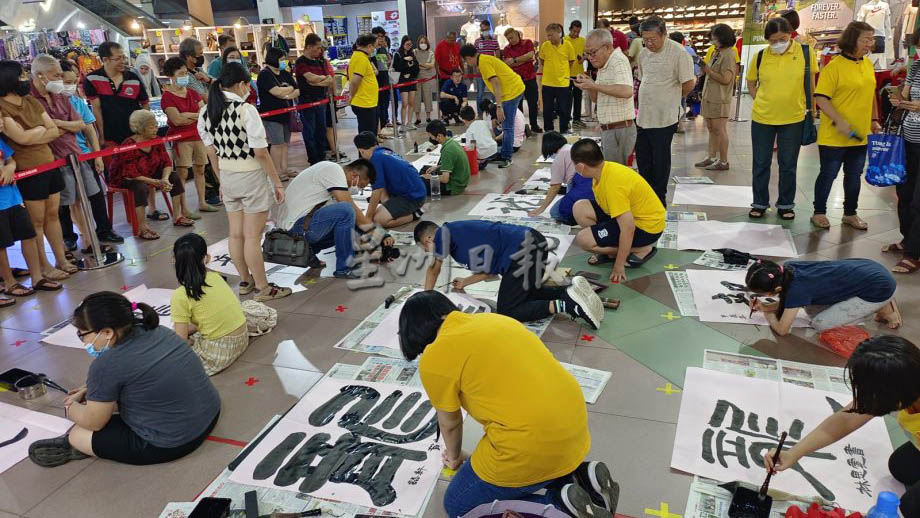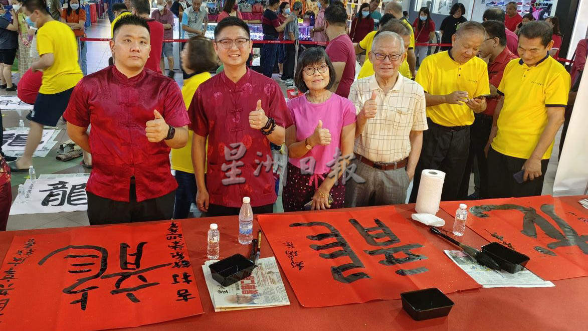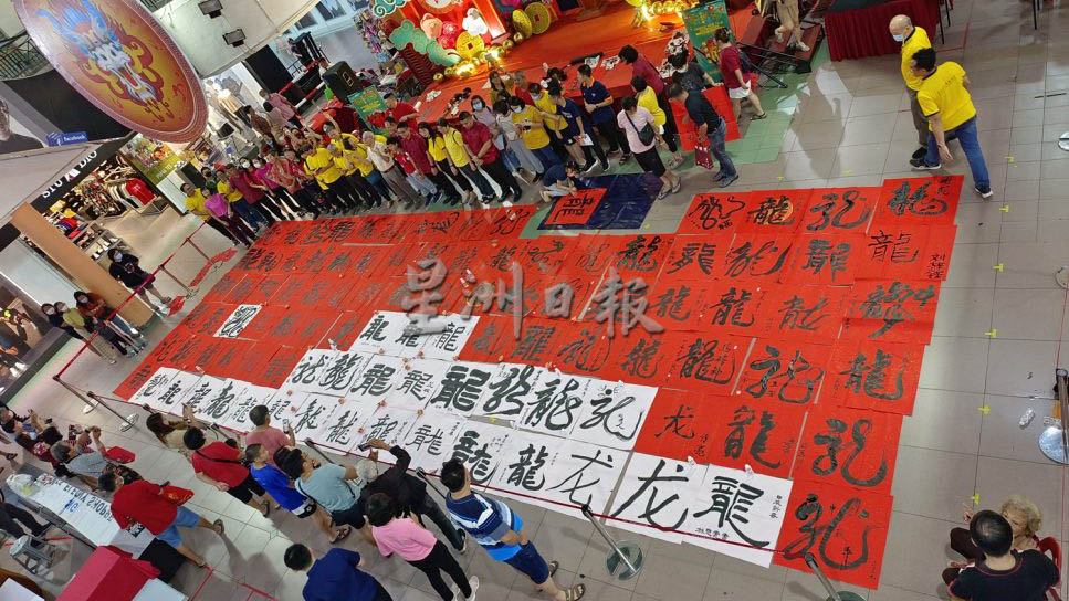 这场由星城广场主办,哥打士打书艺协会协办的榜书挥毫活动,昨晚在星城广场举办,吸引不同年龄层(老、中、青、少)的书法爱好者到场交流,且呈献一条条不同形态的“龙”字。