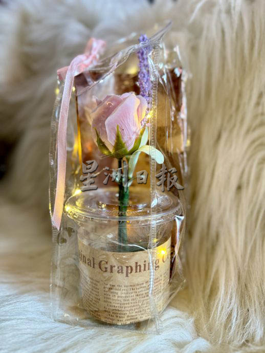 她也说,其店内有推出创意十足的“有钱花”、香皂花、真花假花、永生花等,也可搭配各种红酒及酒杯、各类装饰如灯饰等,顾客可联络他们查询更多。