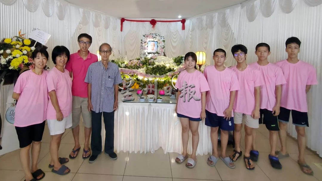 (槟城29日讯)百年老字号广德杂货有限公司第四代传人胡树球离世,亲人穿上粉红衣裳,以粉红喜丧送他最后一程。