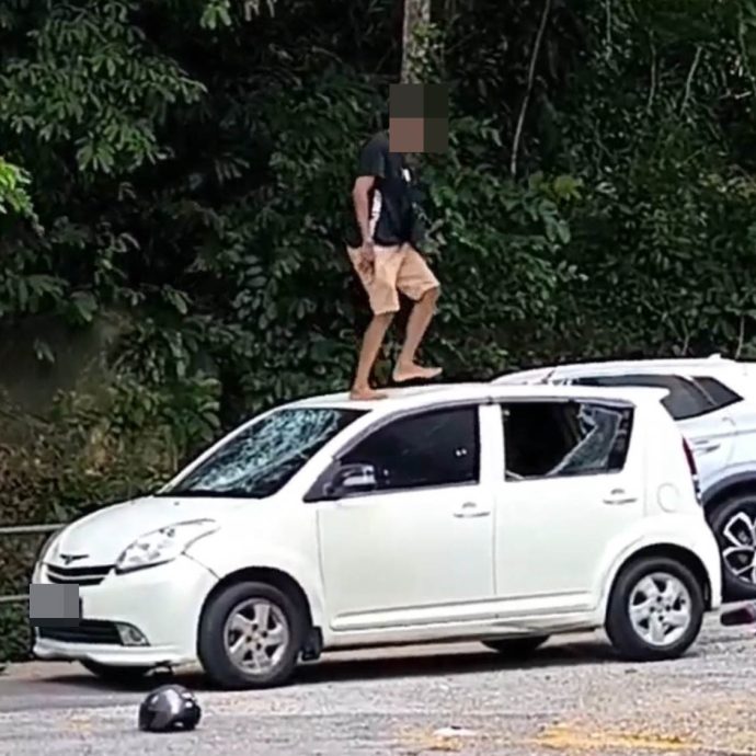 (槟城4日讯)印裔男子昨午行为失控,包括以头盔砸破汽车风挡玻璃,再跳上车顶猛踩的事件源头不是车祸,而是夫妻间的纠纷。