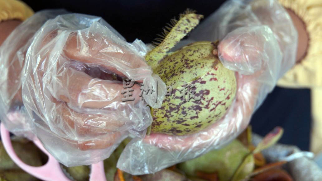 她说,由于猪笼草是在山上野生繁殖,雨水、泥土、杂物都会渗入笼身中,她们都会剪掉猪笼草的笼翼、笼蔓、唇、唇齿后,再放入清水浸泡,用牙刷给猪笼草“刷身”,确保没有沾到泥泞和肮脏物质,才能开始制作。