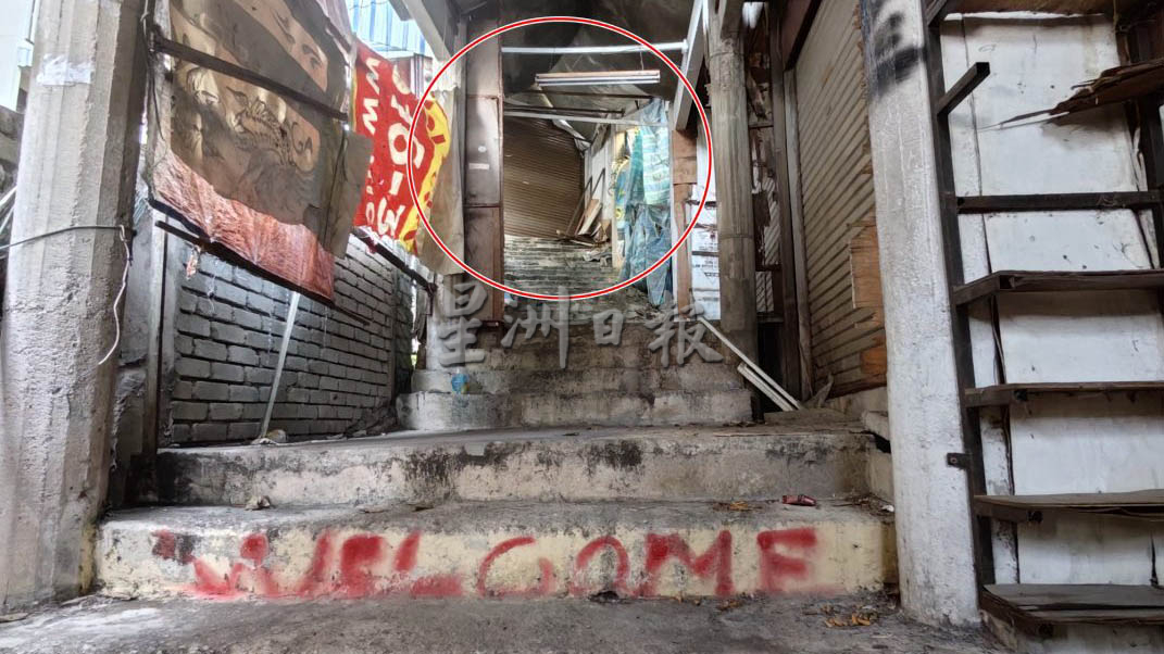 越靠近被关闭的通道,该石级路越“荒凉”,只见石级路上都是垃圾或废弃物,角落旁还有流浪者住过的痕迹。