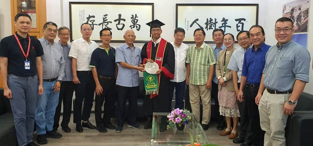 (槟城13日讯)韩江中学毕业生苏靖程,即将在美国南加州大学电影艺术学院影视制作系毕业,他日前穿大学毕业袍回校探访师长,感谢董事会及教师栽培教导,促使他热衷学习,并在影视制作路途上发展。