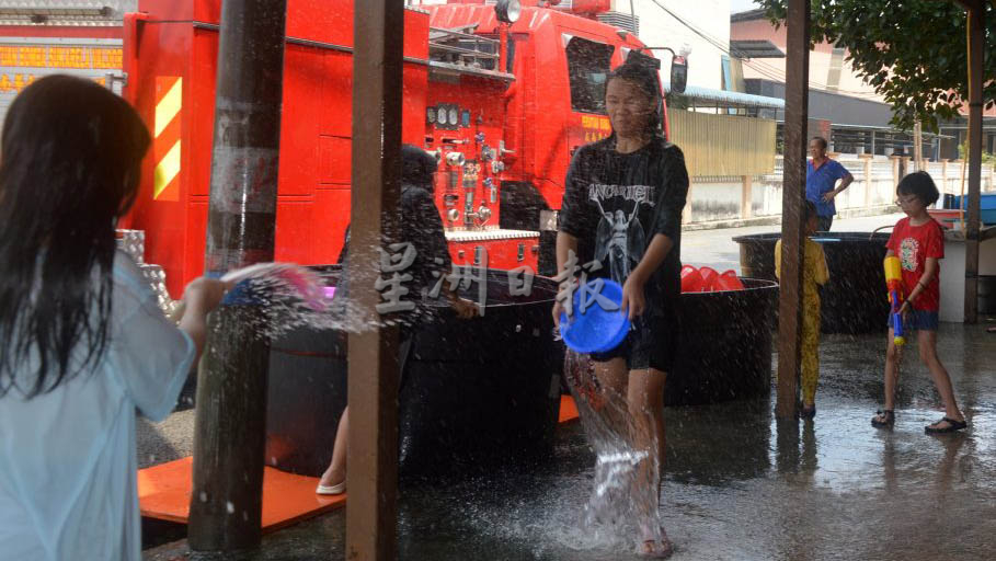 (威南13日讯)华都村关帝庙今年首次举办泼水节,庙前准备了3大桶水,让村内居民感受泼水节气氛,互相泼泼泼。