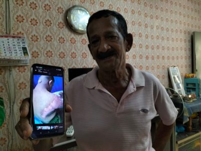 索莱拉兹的妹妹诗婉雅今日在住家受访时说,哥哥昨日被泼液体后已被送往槟城中央医院救治。
