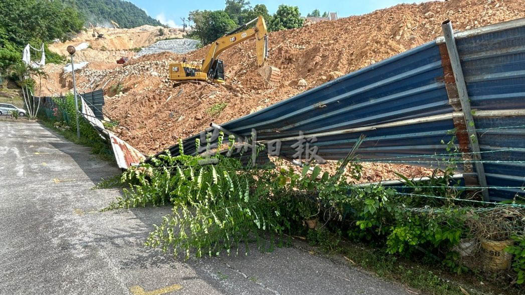 甘密山Mutiara Ria公寓居民协会6个月前已发现上述问题,接连向槟岛市政厅和公共工程局投诉,但至今未有进展。直到本周一(4月29日),工地的山坡崩塌压毁公寓篱笆,泥土涌入公寓范围。