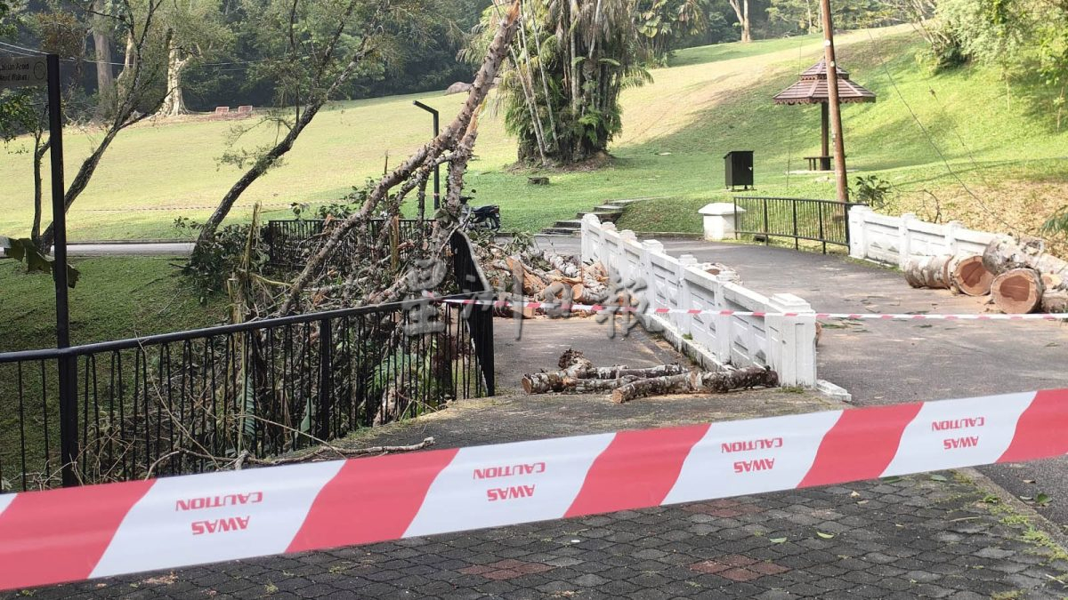 (槟城8日讯)植物园大树倒下,81岁男子机警加速奔跑躲过一劫。