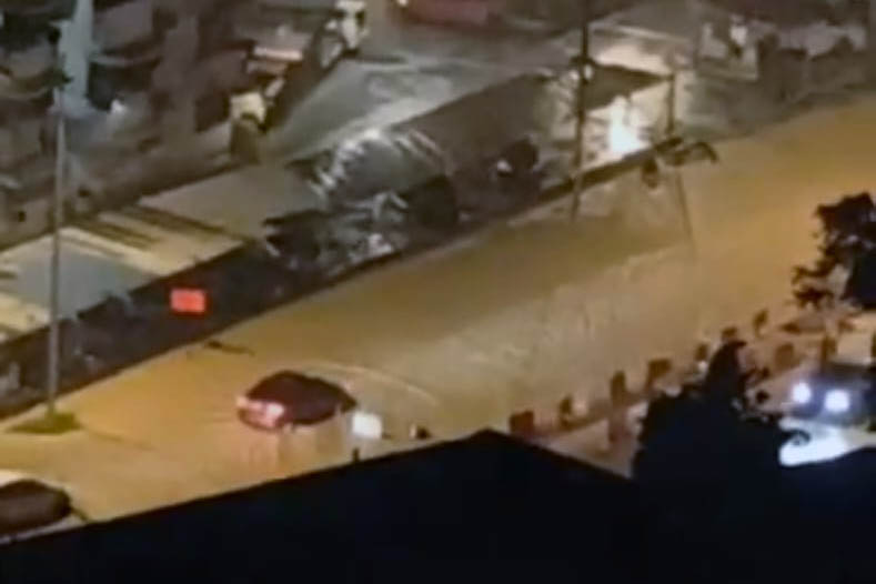 直至晚上10时30分,虽然雨势转小,但积水仍未消退,一些车辆选择绕道而行,但也有者硬着头皮缓缓驶过积水路段。