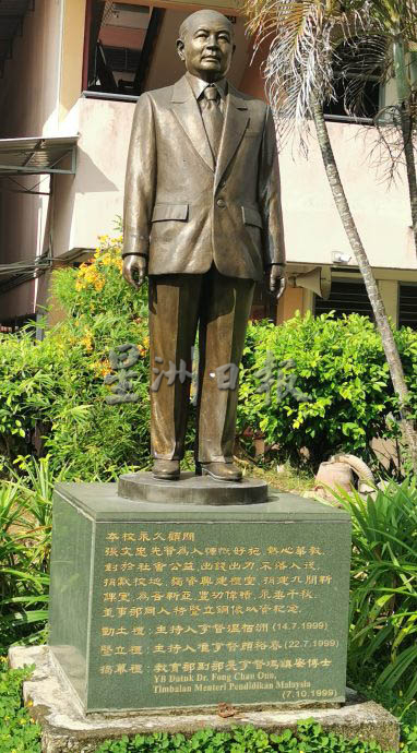 他说,该铜像是新亚学校献地人张文忠。追溯新亚学校的发展史,不得不对当初肯献地,并以一元对一元方式支持第二期扩建计划的张文忠敬礼。张文忠高瞻远瞩的献地建校精神,成就了新亚学校今日的规模面貌。