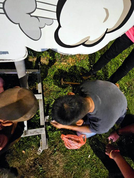 王耶宗在脸书专页贴文指出,乡村社区管理理事会(MPKK)成员协助将有关铁架钉子嵌入土地,使之更为牢固,避免被偷。