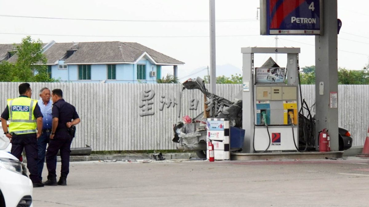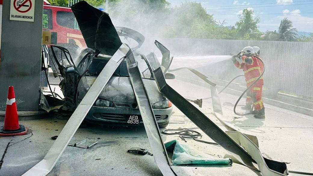 这起事故于今午约4时10分,发生在乐保的一座加油站,加央消拯局约4时26分接到投报,指加油站有火烧轿车事故,消防员赶到现场时,火势受到控制,消防员继续灭火。