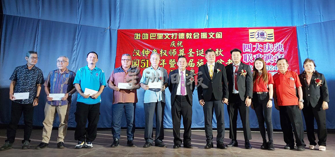 (吉辇23日讯)巴里文打德教会振文阁于昨晚举行庆祝创阁51周年,汉锺离师尊宝诞千秋、第44届施济贫老及施医赠药40周年纪念四大庆典晚宴,也拨出4500令吉献捐5团体。