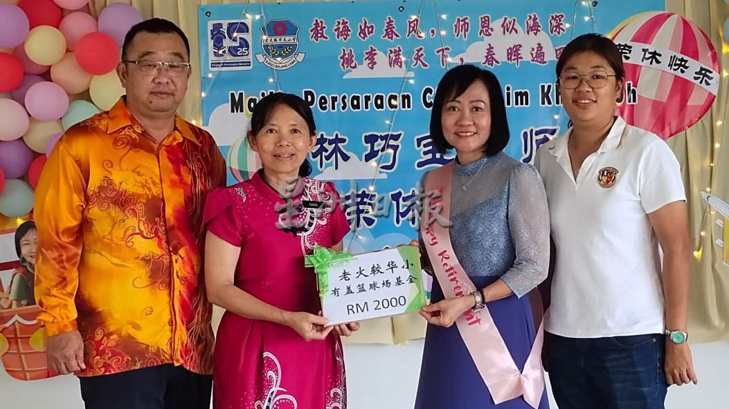校方今早为林巧宝举办荣休会,并邀其夫婿罗镇波与子女,以及部分从老火较华小荣休的教职员出席。