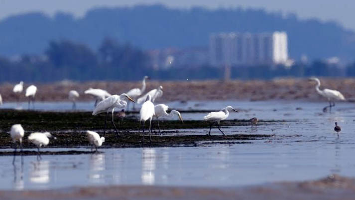 他说,在这片区域,也可观赏到3000只本地鸟类在此觅食,包括本地的白鹭、斑鸬鹚、小白鹭、紫胸苇鳽、小鹭、灰鹭、白琵鹭、水雉和鹭鸶等,犹如鸟类天堂般,非常美丽。”