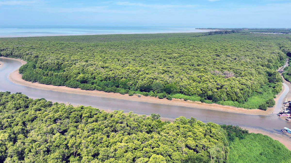 “红树林构成了一种天然的湿地,其树木和植被的根系能够有效的固定土壤,有助减缓水流速度,降低洪水发生的机率,如果红树林消失,将加剧突发水患发生。”