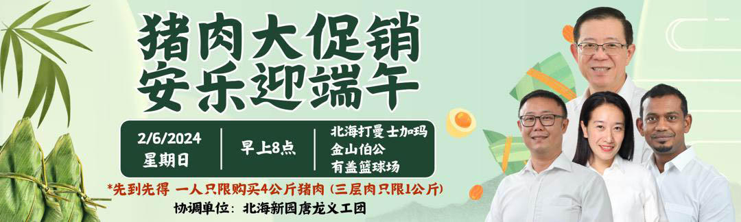 (北海31日讯)峇眼国会议员特别助理陈楷棕呼吁民众踊跃于6月2日,到北海打曼士加玛金山伯公有盖篮球场选购每公斤便宜10令吉的猪肉,以迎接即将到来的端午节。