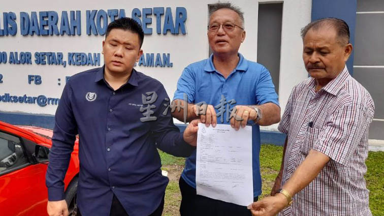 黄绍维与2名亚罗士打市议员拿督庄文财和蔡崇扬在哥打士打警区警局报案后,向媒体讲述事发经过。