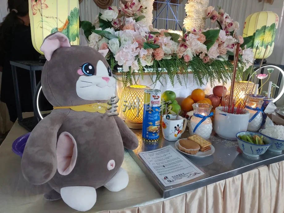 今早,许多老师与同学及亲友到来吊唁,他们都非常伤心不舍鍏劲就这样离大家而去。其中一位同学还带著鍏劲喜欢的卡通猫到来,希望猫猫陪伴鍏劲。