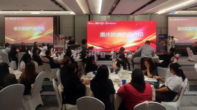 另外,会上也介绍各种重庆旅游景点及产品,包括龚滩古镇、三峡、梯田、长江游轮等。出席者包括各旅行社、旅游机构代表。