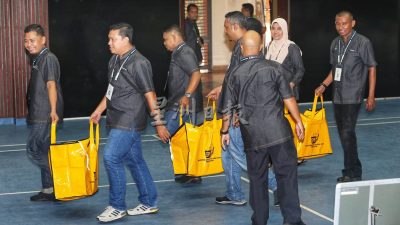 6.13pm: 第一批送回总计票中心的选票与成绩。