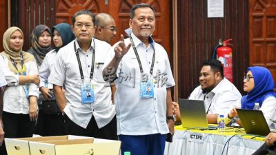 6.29pm: 选委会主席南兰哈伦抵达计票中心,随即展开巡视。
