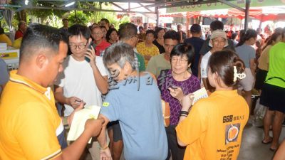 有别以往,今年东主拿督赖敬群是以派号码的方式,以更有效控制秩序,1000个号码派完(分为乐龄和普通),还有人来讨号码。