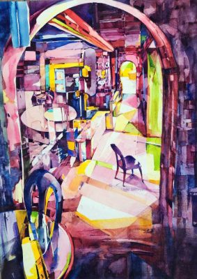目前就读于钟灵独中的陈于慷,9岁开始便向锺耀才学画。他本身主要画的是水彩,而个人较喜欢的画法是缝合画法,因为比较干净且喜欢复杂的画,可以把原本简单的画面变复杂且丰富多彩。