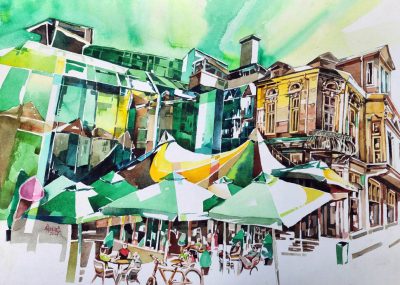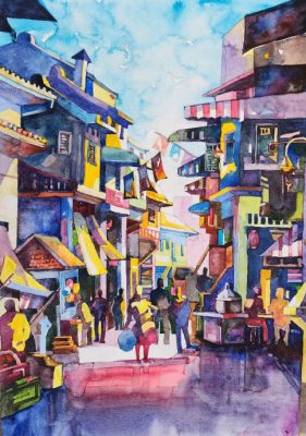 参与即席写生绘画期间,他最难忘的是有次在山上写生时,天气非常热,突然间却下起大雨,他赶紧到附近的教堂避雨。
