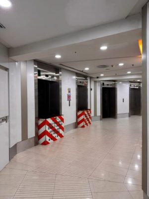 今早开始,只有黄色升降机继续服务,以致大部分公务员必须排队等待,排队人龙延绵至底楼。有者必须走楼梯到楼上办公室。