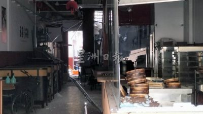 (槟城3日讯)乔治市新街的丞蒸茶楼今晨5时许发生不明爆炸事件,损坏店内设施,所幸没造成人命伤亡事故,爆炸原因有待消拯局调查鉴定。