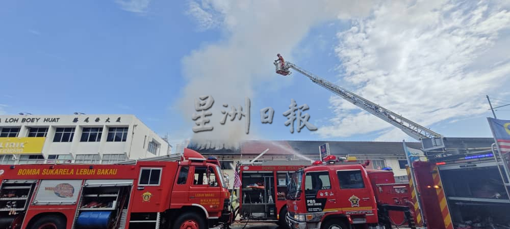 这火灾今午4时许在丹斯里郑耀林路发生,药房今日未营业。