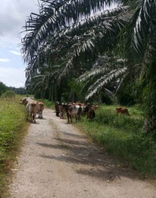 他说,牛群有上百只,包括黄牛与水牛,饲养在距离柚园约不远的地区。由于饲养者没严加看守,任牛群四处遛达,它们常在附近园坵内乱闯。