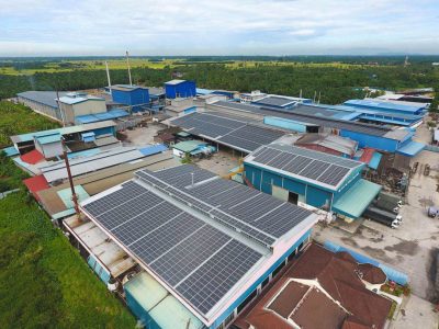 乙宝化泡厂除果串纤维回收发电,也回收废纸煮成纸浆,制成一片片的环保蛋托,除了自己掌控的蒸气发电、烘干,工厂也装上光伏太阳能发电,以期做到自供自给,减少碳排放,也降低电力成本。