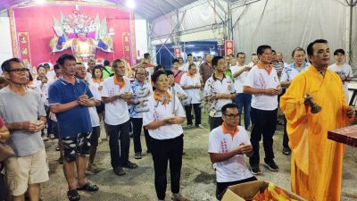 新西园(大士爷)盂兰胜会理事会庆赞中元活动今年已第28年,今年庆赞中元活动则从本月4日(农历七月初一)开始举行,到昨晚(十三)进入高潮环节而结束 ,该理事会今年的庆赞中元活动比起去年增加2天,为期共13天。