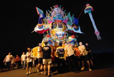 大士爷纸扎金身随著信众的香火燃起,朝西北而坐的大士爷头部在炯炯火光中往东北方的右肩倾落,寓意来年旺东北方。