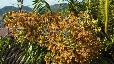槟岛是一座蕞尔小岛,岛上的升旗山却孕育了世界最高大威猛的老虎兰,而这个本地原生品种老虎兰经过升旗山半山小园主林永兴(59岁)多年培育,有了逾百丛齐聚的规模,每年花季争妍斗艳,蔚为奇观。