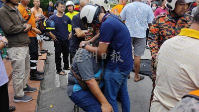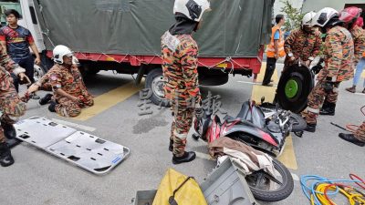 (槟城24日讯)父亲驾摩托车载中学生女儿回家,途中试图穿过巴士与罗里之间的空隙,岂知却失控翻车,导致女儿被卷入罗里的轮底遭碾死。