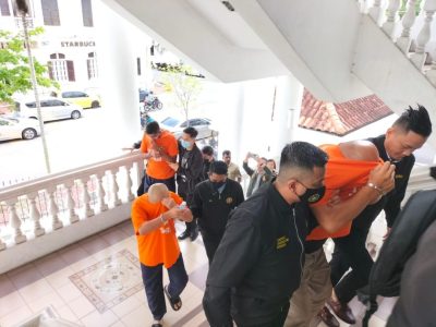 反贪会官员今早把3人带到乔治市推事庭申请延扣令,推事西蒂努海拉允准延扣他们4天助查。