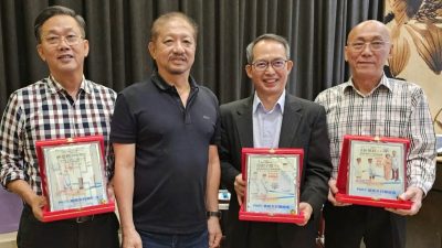 黄才荣也颁赠纪念品给受封拿督斯里的刘子健、拿督斯里林华利以及拿督林岳毅。