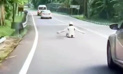 (槟城7日讯)在浮罗山路玩“旱地雪橇”的男子,你被警方注意了!
