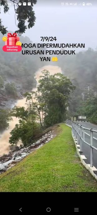 铅县消拯局主任诺哈密迪指出,倾盆大雨导致瀑布水流湍急溢流,在中午12时水流涌入附近的住宅区。