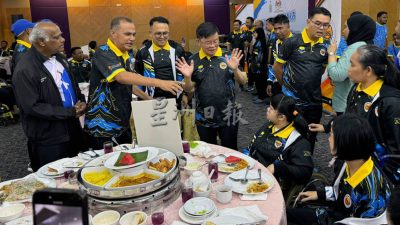 曹观友在槟州青年及体育委员会主席魏子森、槟州体育理事会主任蔡兴华等人的陪同下,向每位参赛的运动员加油打气,并相信凭借槟州团队高昂的斗志,必能为槟州争光。