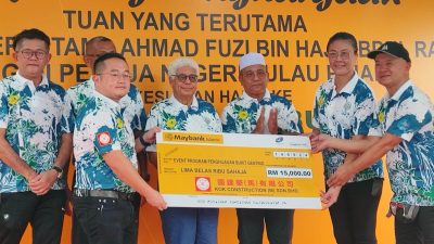 国建筑(马)有限公司的代表黄雄霆和陈永强移交1万5000令吉经费给负责植树的槟城国际登山者俱乐部,天隆电器工程有限公司执行董事陈咏隆与董事陈泳昌也捐献1万令吉予槟州元首慈善基金会。