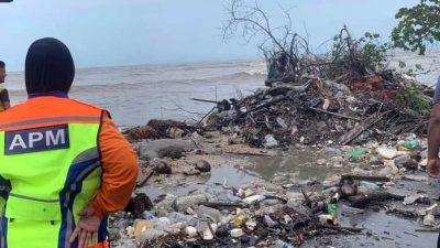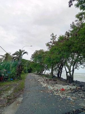 (加央17日讯)适逢中秋节大涨潮,又碰上超级月亮现象致大浪潮,玻璃市港口海潮倒灌,把沿岸沙石及海上垃圾都卷上岸,造成玻璃市港口至双弄港口沿海路段布满垃圾及沙石,一片狼藉。