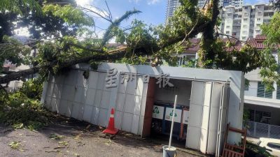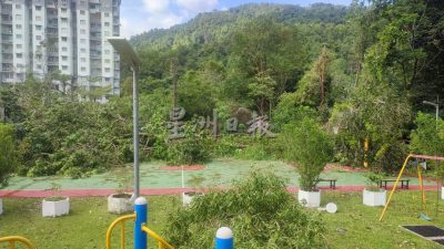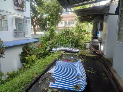 (槟城19日讯)丹绒武雅文秀组屋区风灾灾情严重,大风刮倒十多棵大树,造成私人和公共财产损失,幸没有人命伤亡。