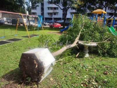 丹绒武雅文秀组屋区 狂风吹倒十多棵大树